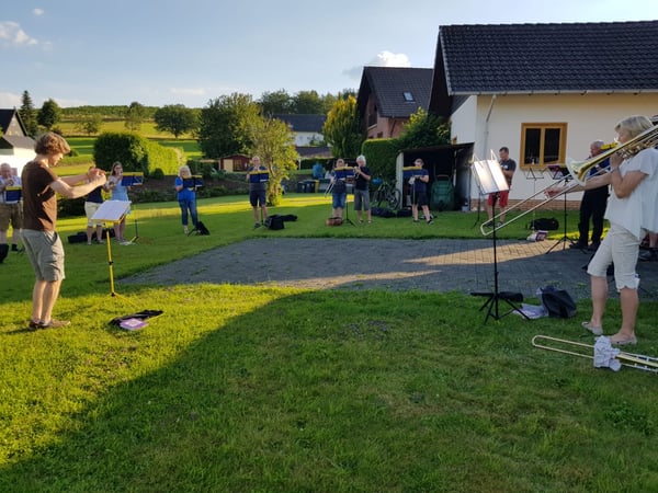 In Corona Zeiten sieht eine Posaunenchorprobe so aus...